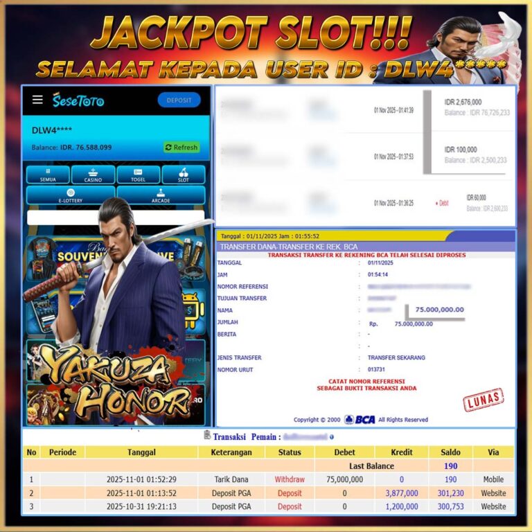 JACKPOT SLOT YAKUZA HONOR RP 75.000.000