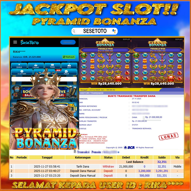 JACKPOT SLOT PYRAMID BONANZA RP 21.000.000
