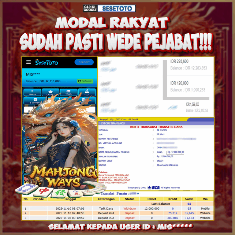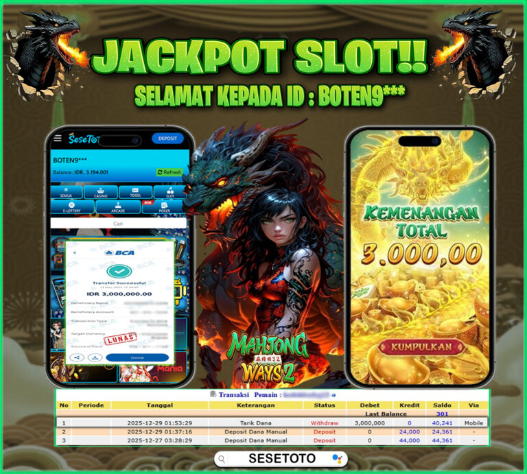 JACKPOT SLOT MAHJONG WAYS Rp 12.000.000