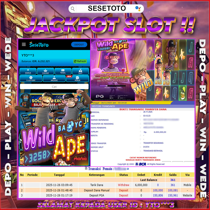 JACKPOT SLOT WILD APE RP 6.000.000