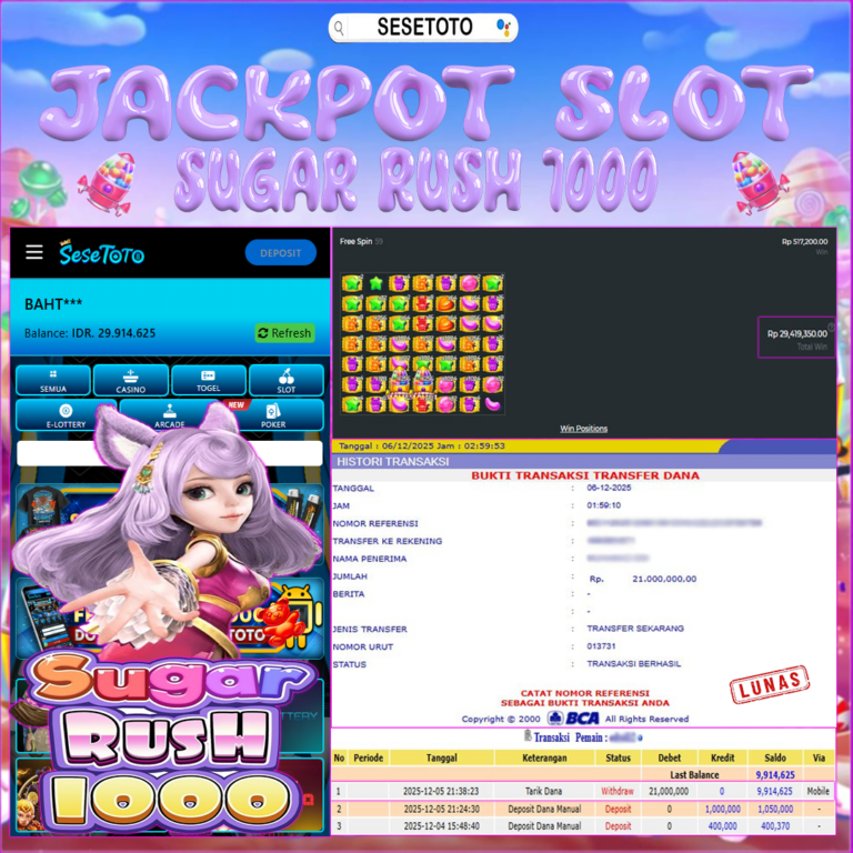 JACKPOT SLOT SUGAR RUSH 1000 RP 21.000.000