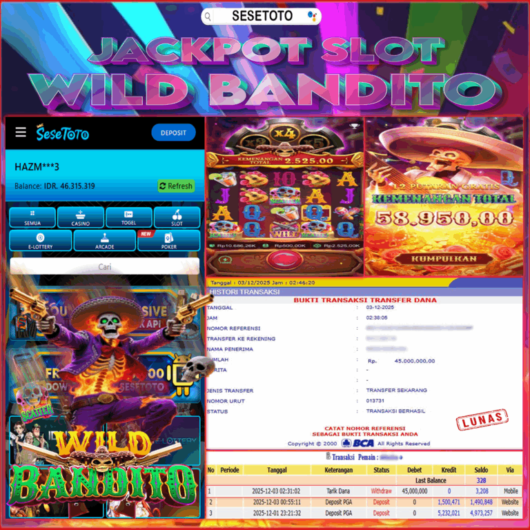 JACKPOT SLOT WILD BANDITO RP 45.000.000