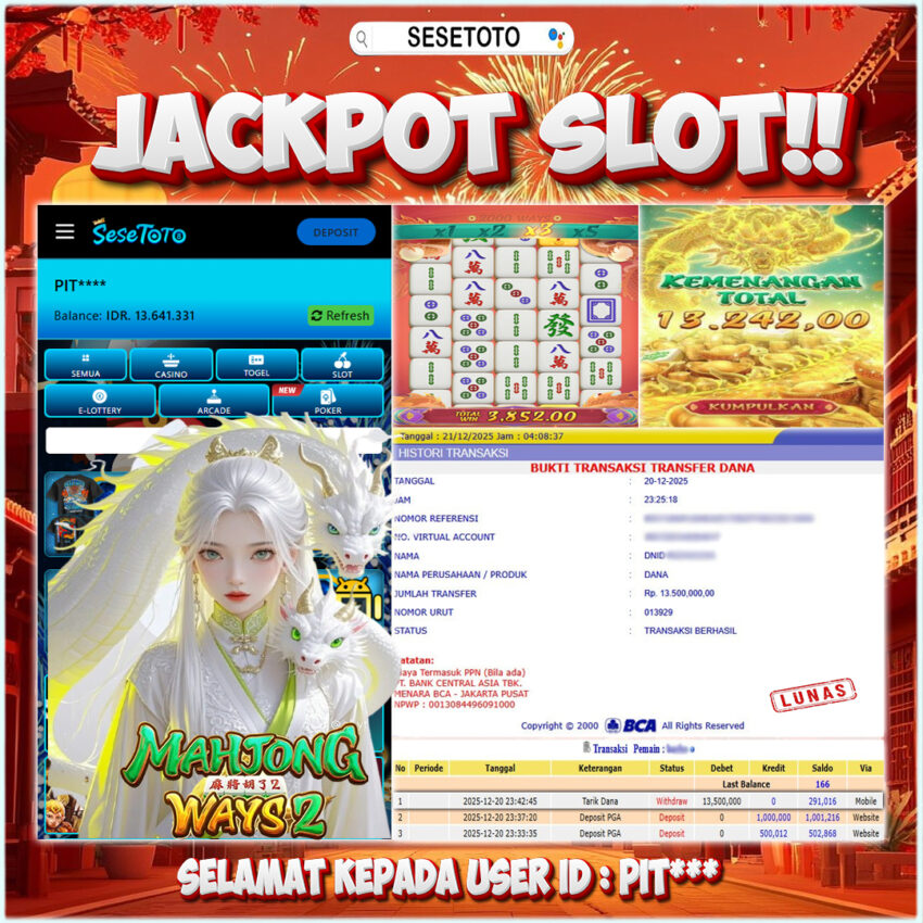 JACKPOT SLOT MAHJONG WAYS 2 RP 13.500.000