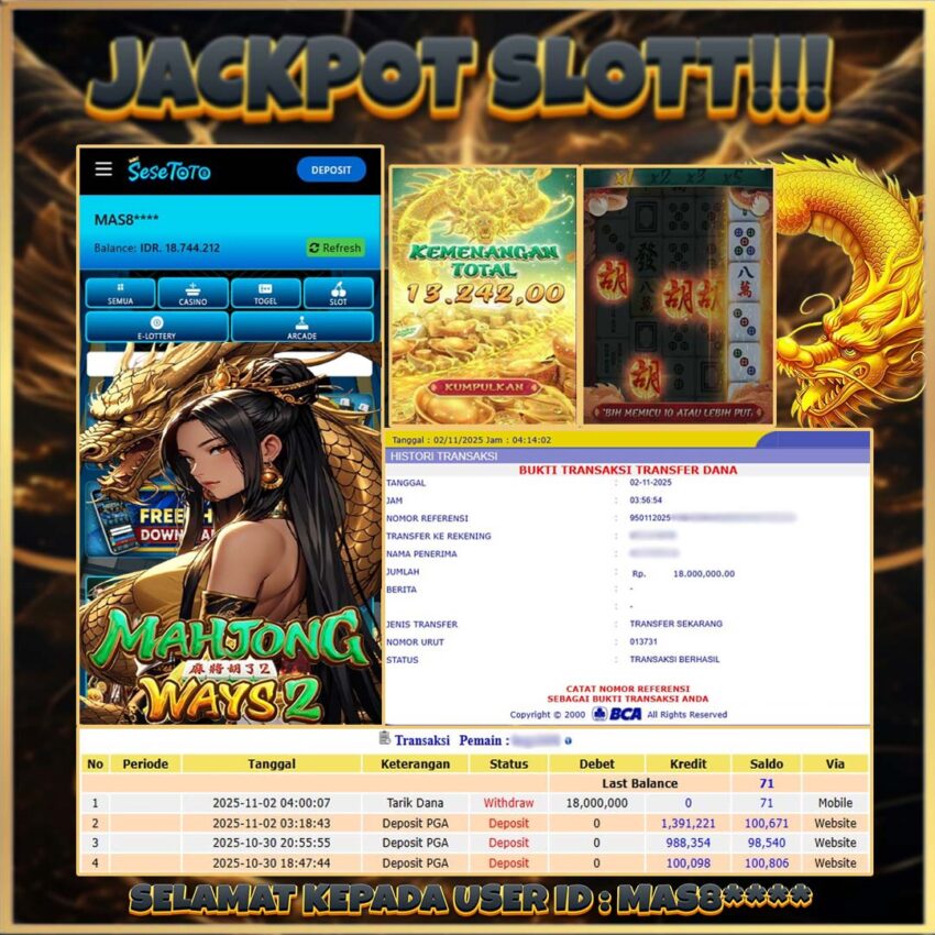 JACKPOT SLOT MAHJONG WAYS 2 RP 18.000.000